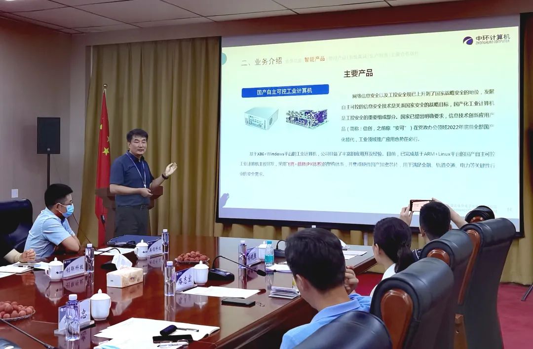 會(huì )上,中環(huán)計算機公司董事長(cháng)秦克景對公司整體發(fā)展情況進(jìn)行了介紹,總經(jīng)理助理閆貴龍對公司的發(fā)展歷史、產(chǎn)品研發(fā)、市場(chǎng)應用情況進(jìn)行了詳細匯報。